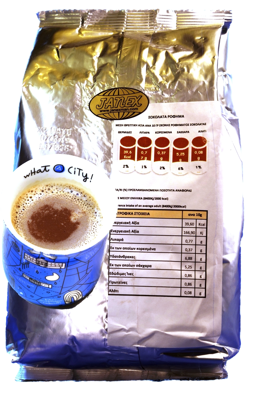 Zloženie: kakao (obsah tuku 20-22%), cukor, kukuričný škrob, soľ.